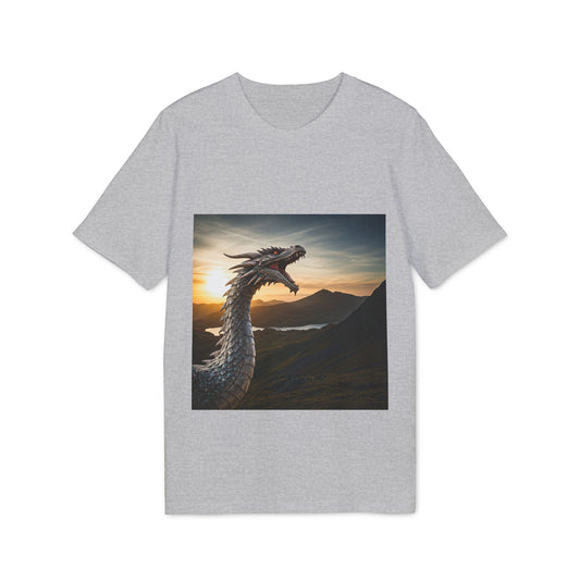 T-Shirt - Energetic Fire Dragon in front of Welsh Mountain